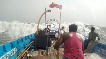 The pictures taken on a beach in South Africa reveal how the boat was dangerously bumpy as it was pushed by strong waves.