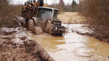 The big surprise was when he managed to get out of the water. 2 concrete barriers were in the water and were practically pulled out by the tractor. any other car or truck would have got stuck in them and would have suffered some serious damage.