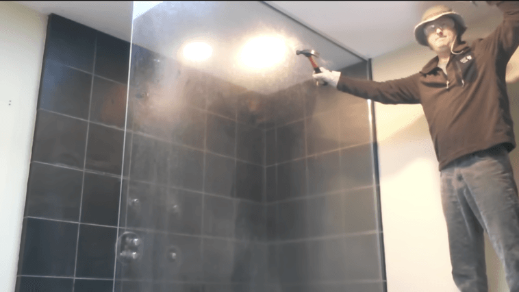 Experiment: How difficult it is to break a tempered glass shower wall door.