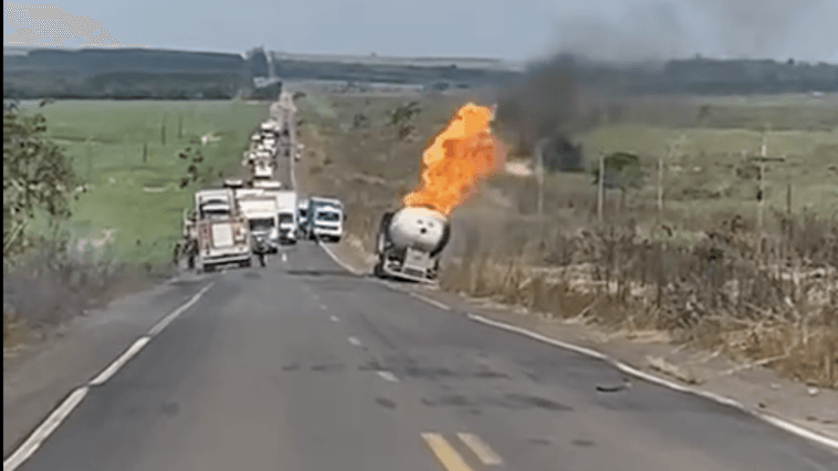 Never stay too close to a burning propane tank truck
